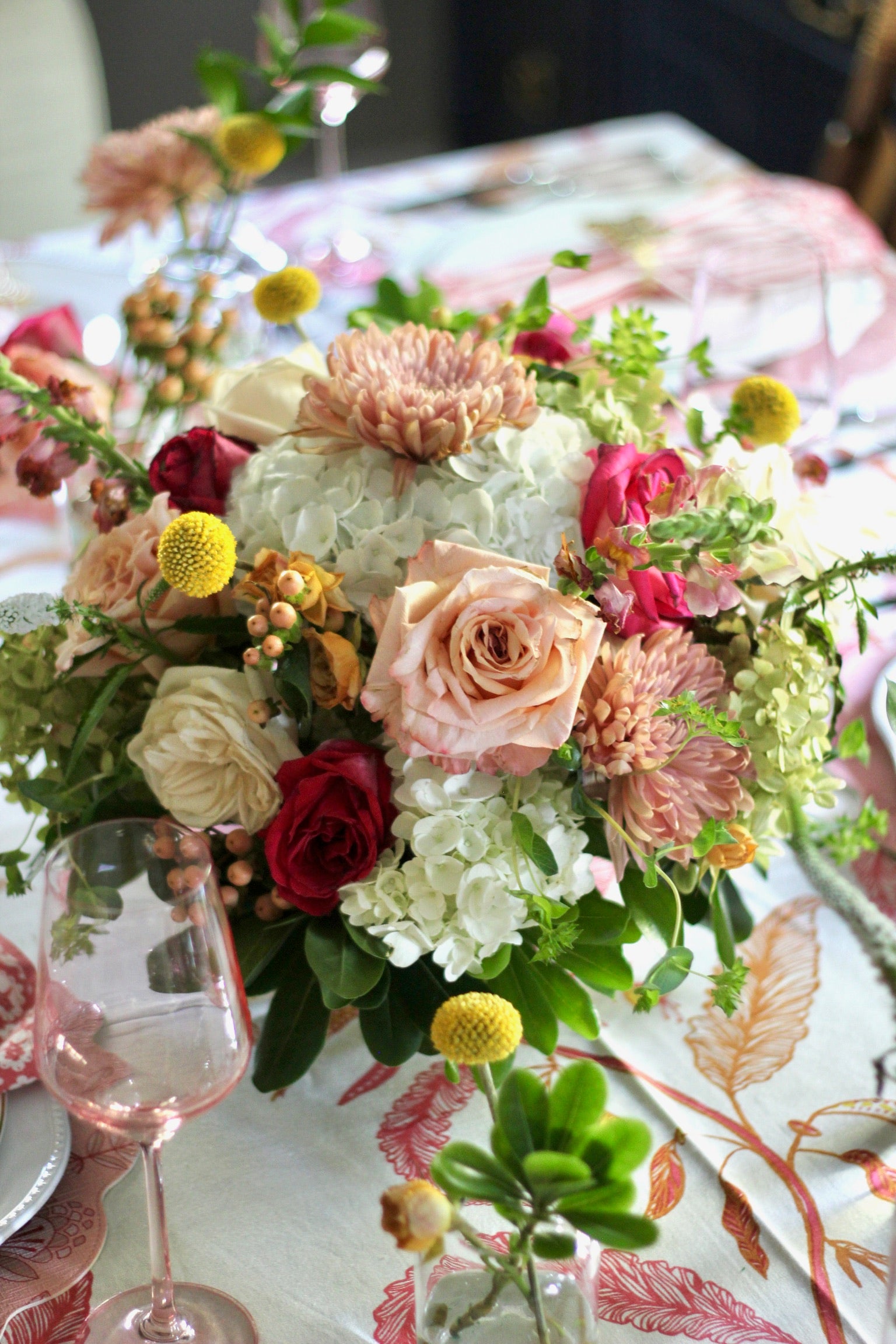 Please keep in mind the flowers in the photos are just examples of a similar shape and size arrangement and those used for our Thanksgiving Floral Offerings will be selected based on what is in season and looks best together at the discretion of Fete & Vignette.